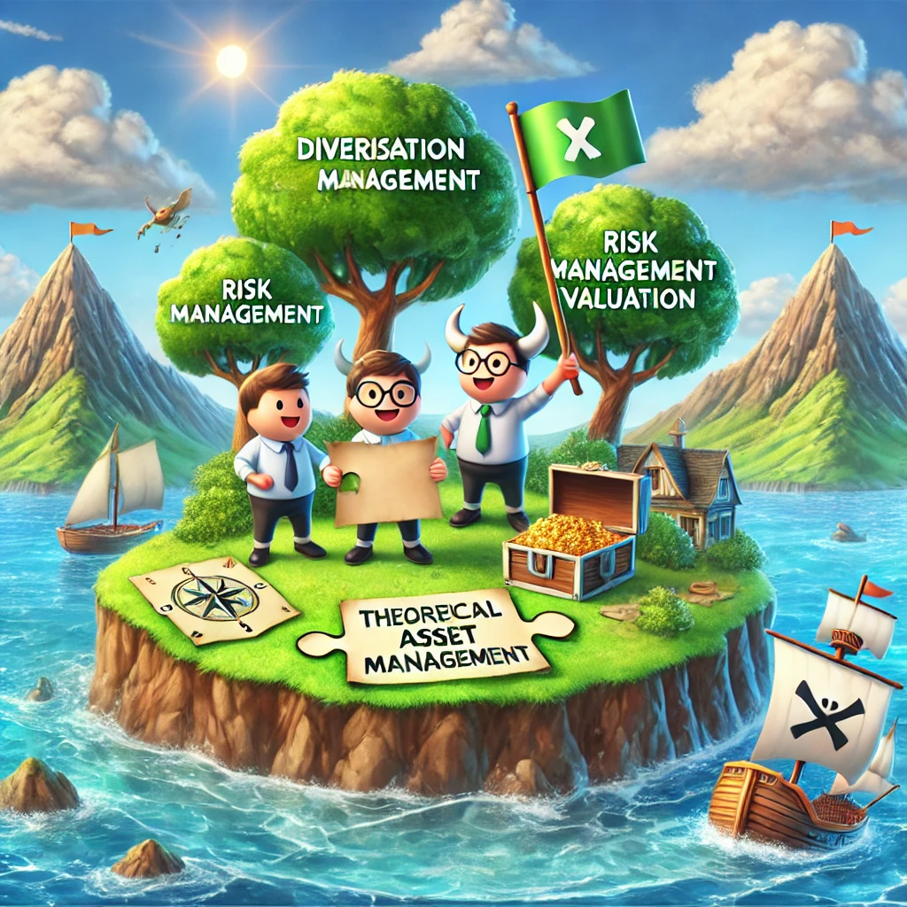 Nesta ilha imaginária, somos cumprimentados por três amigos: Diversificação, Gestão de Risco, Avaliações. À vez e ordenadamente, cada um destes amigos procura juntar as peças do puzzle: